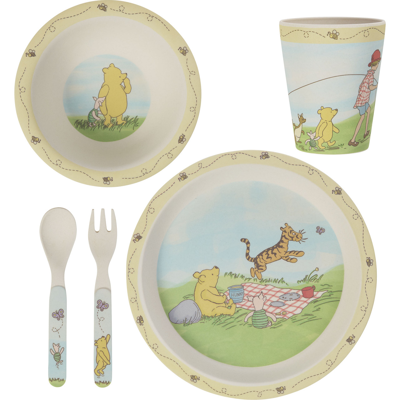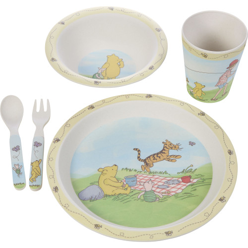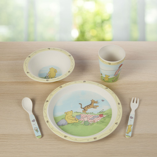 - This bamboo dinnerware is a great way to make a child smile featuring iconic characters from the classic book by A.A Maline, Winnie The Pooh.