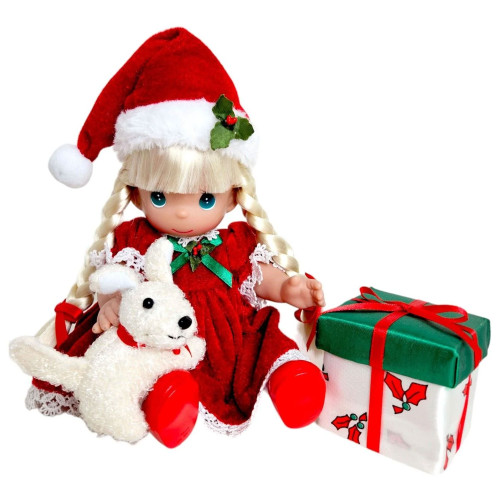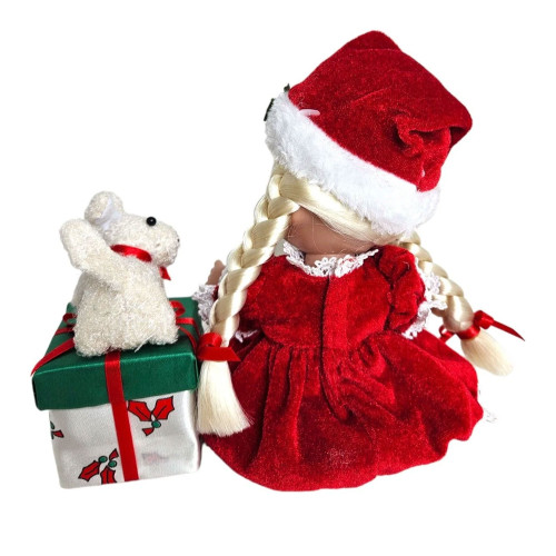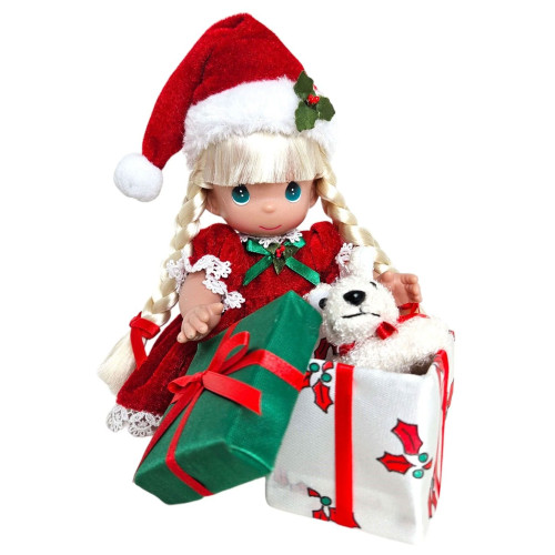 - Unwrap the joy of the season with a beautifully crafted blonde doll, dressed in festive cheer and ready to bring holiday sparkle.