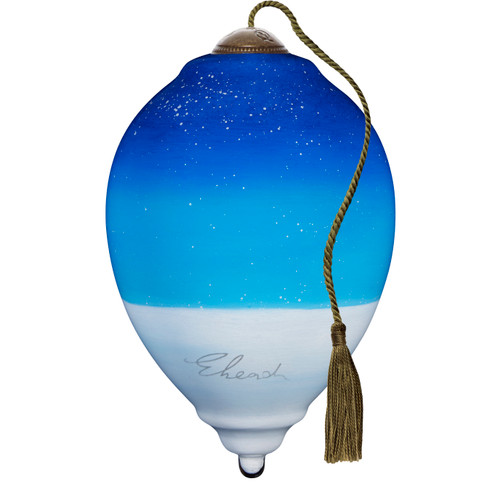 - An adjustable tasseled cord allows for display on a Christmas tree or a stand.