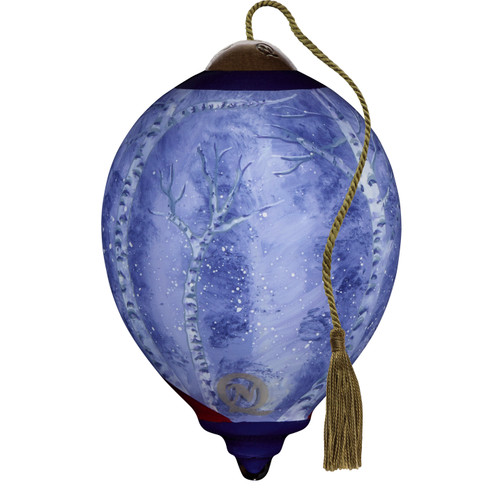 - An adjustable tasseled cord allows for display on a Christmas tree or a stand.