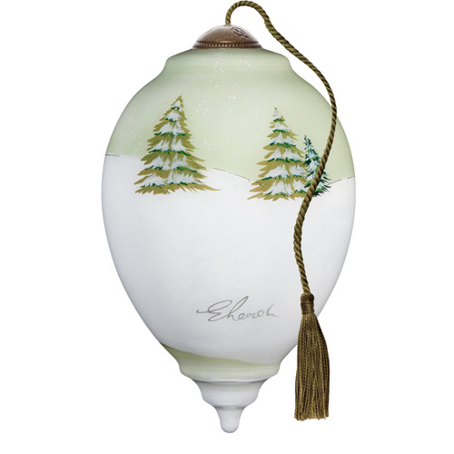 - An adjustable tasseled cord allows for display on a Christmas tree or a stand.