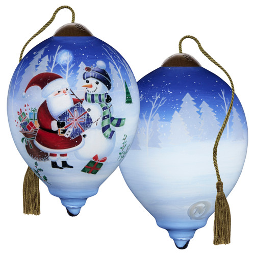 - The world is blanketed by soft, white snow and Santa has stumbled across a smiling snowman deserving of a Christmas gift.