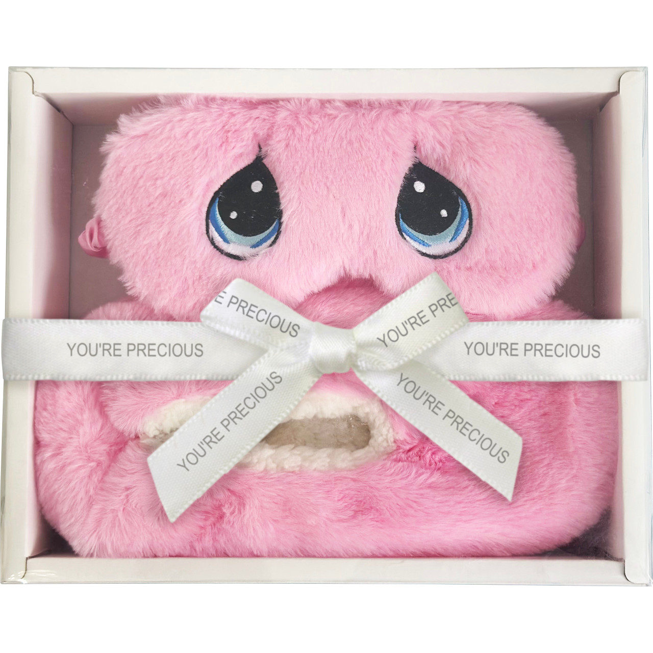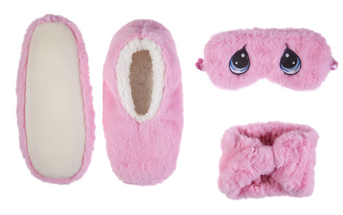 - Pamper someone special with a gift set that will make her feel pretty and precious! Set includes a cozy pair of slippers, a sleep mask with embroidered teardrop-shaped eyes, and a comfy headband.
